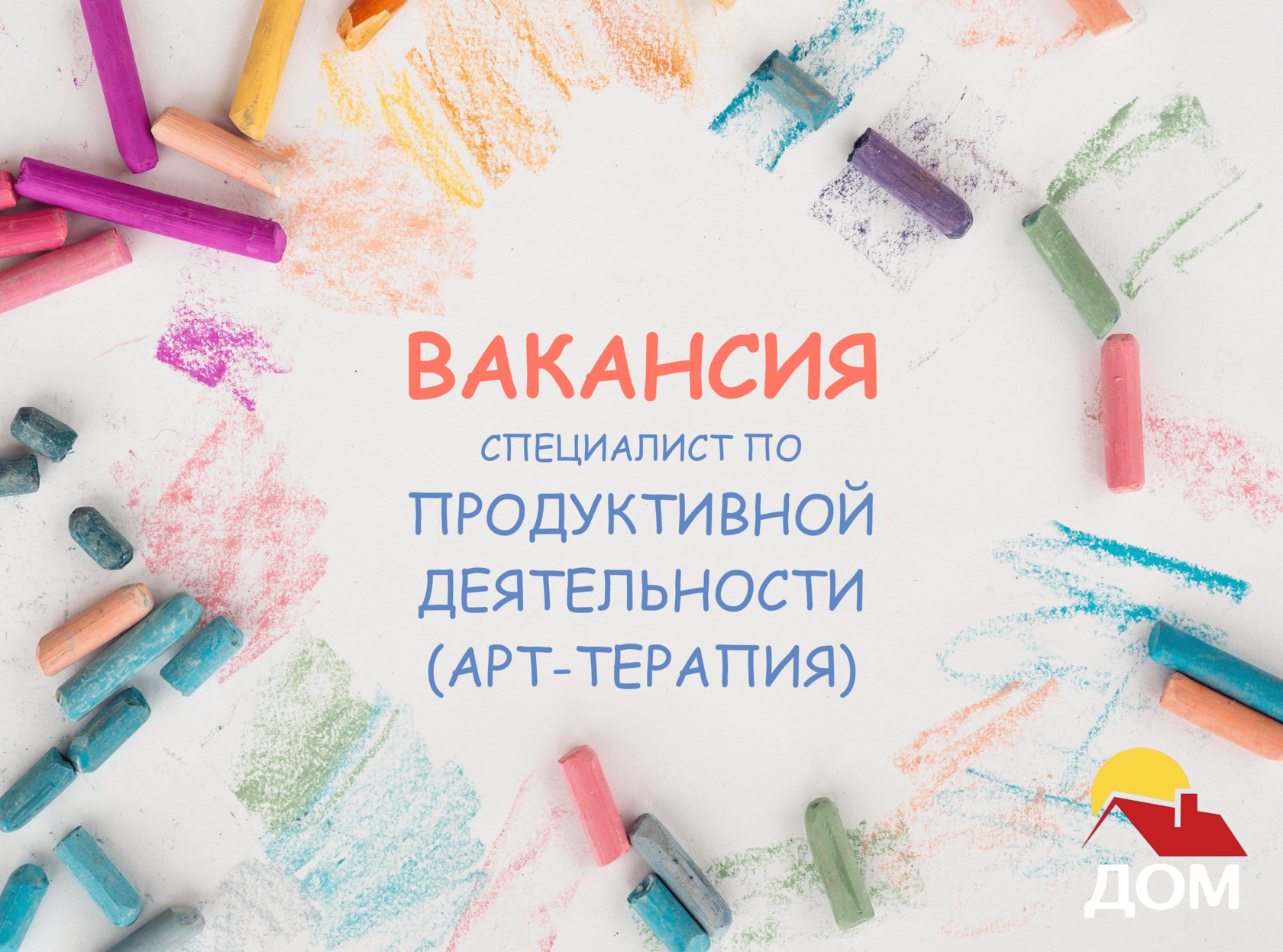 Центр реабилитации для детей и взрослых с ментальными нарушениями АНО «ДОМ» ищет специалиста по продуктивной деятельности (адаптивной арт-терапии) для работы с детьми с нарушениями развития.